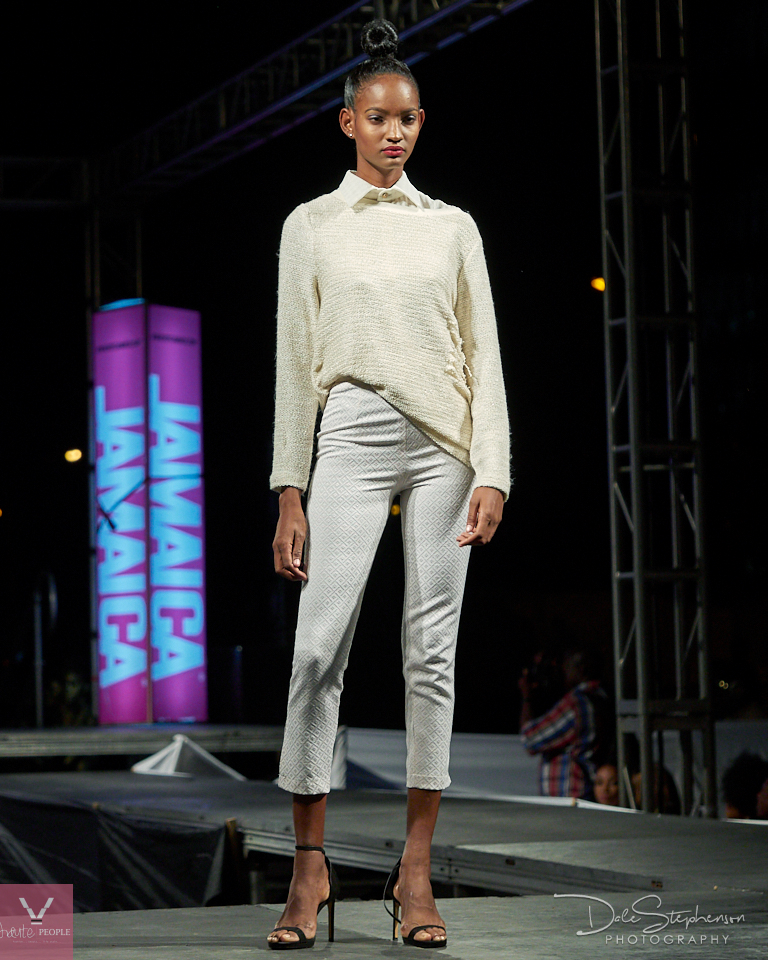 Next up was the collection by Mission Catwalk Alum Janseen Graham with his collection perfect for summer with ruffles, beautiful floral prints and the remixed yet versatile jumpsuit. Other Designers of the night included: Rico Vassell, Avant Garde Caribbean winner 2018, Mercian Copeland, Desmond Onfroy, the Queen of knitwear Nina Karle and Oshane Hines with his stand-out futuristic design concept, complete with a vintage golden sewing machine and his ode to Jamaica as he waved the Jamaican Flag proudly after his presentation.
