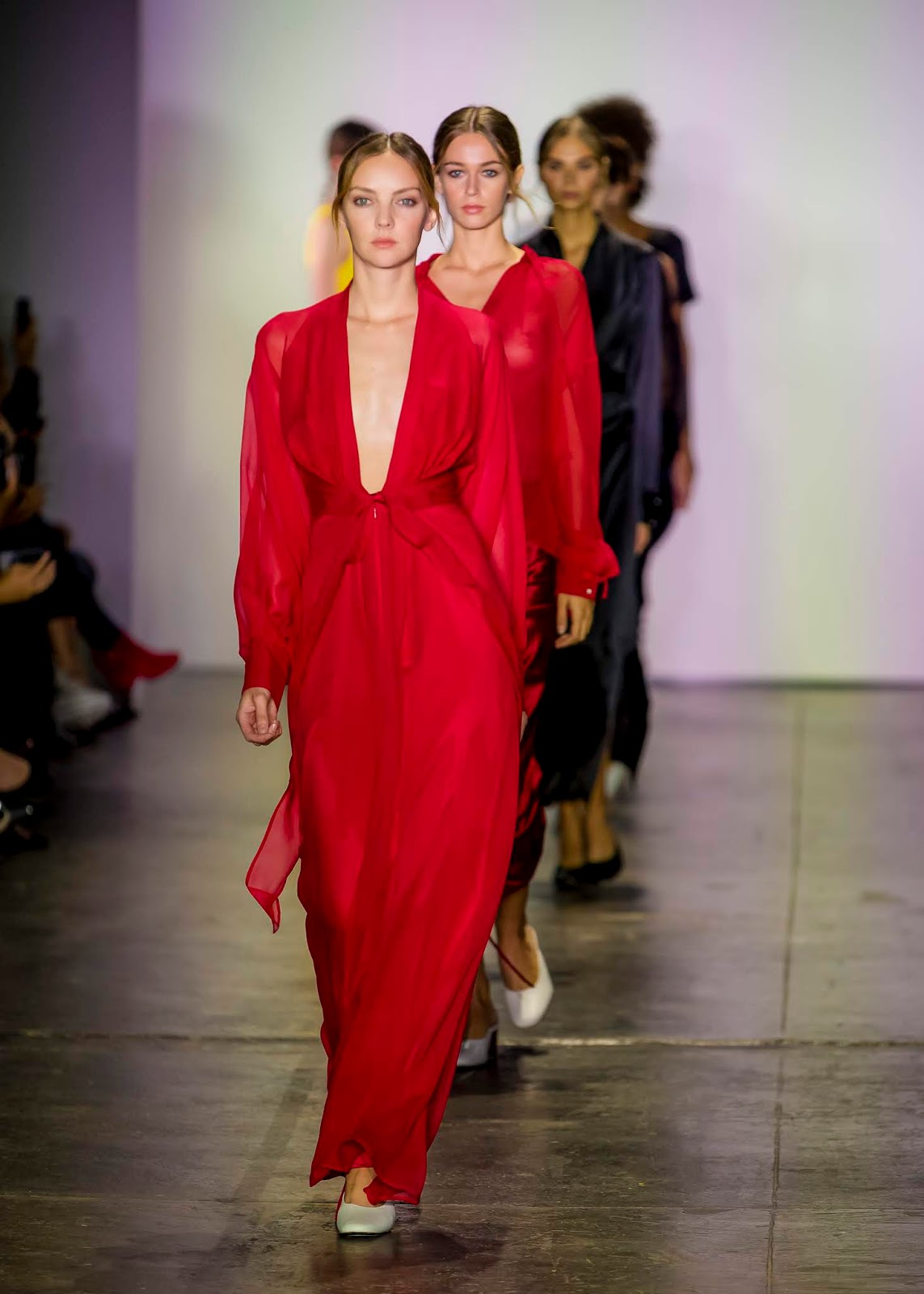 Designs of relaxed silhouettes and refined basics flowed effortlessly down the runway as models gracefully strutted the runway. We saw elements of minimalism mixed with East Asian attire in a myriad of colors ranging from dark to light and a pop of color with pink, red and yellow.