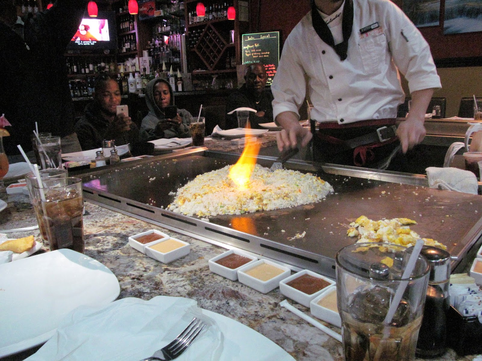 Since we are currently on vacation in Nashville, my family and I have been eating out at a few local spots which have simply been amazing and interesting. We ate at Xiao’s Hibachi and Sushi where we experienced live Japanese cooking for the first time. Let me tell you in advance that the wait time was ridiculous! We waited for close to an hour for a table and had to wait until the previous family left and for them to clean up and make way for the new chef. The new chef came in and we were finally seated where we were given menus and the chance to select from their extensive Hibachi menu. I selected Terraki Shrimp with Fried Rice which also came with a mushroom + escallion “soup”, salad and fresh vegetables which also had the teriyaki sauce incorporated. I liked that for all the meals no MSG or weird seasonings were used and the only thing added was salt and pepper + teriyaki sauce. This restaurant had a lot of excitement! The chefs had us entertained with his knife yielding skills, egg flipping and tossing and of course the sudden burst of flame on the grill which was the highlight of the show that took us by surprise where we all “‘oohed” and “awed” in amazement.