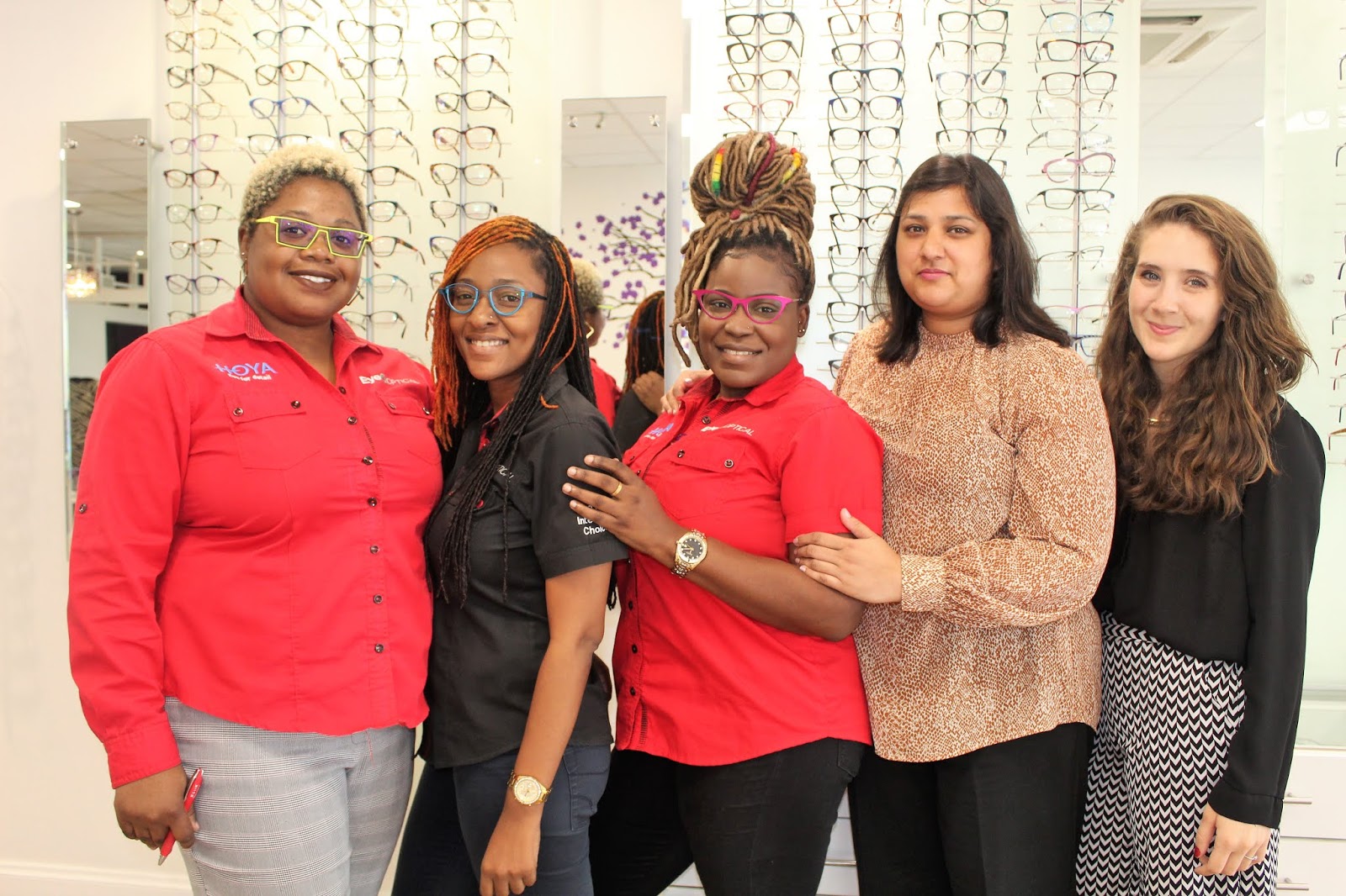 Eye Q Optical Manor Park Team, From Left: Sherdian Livermore- Frame Stylist, Sandrine Myers-Frame Stylist, Janiece Forbes- Client Services Coordinator, Shabnam Saddique-Dispensing Optician and Dr. Olivia Waller- Optometrist |