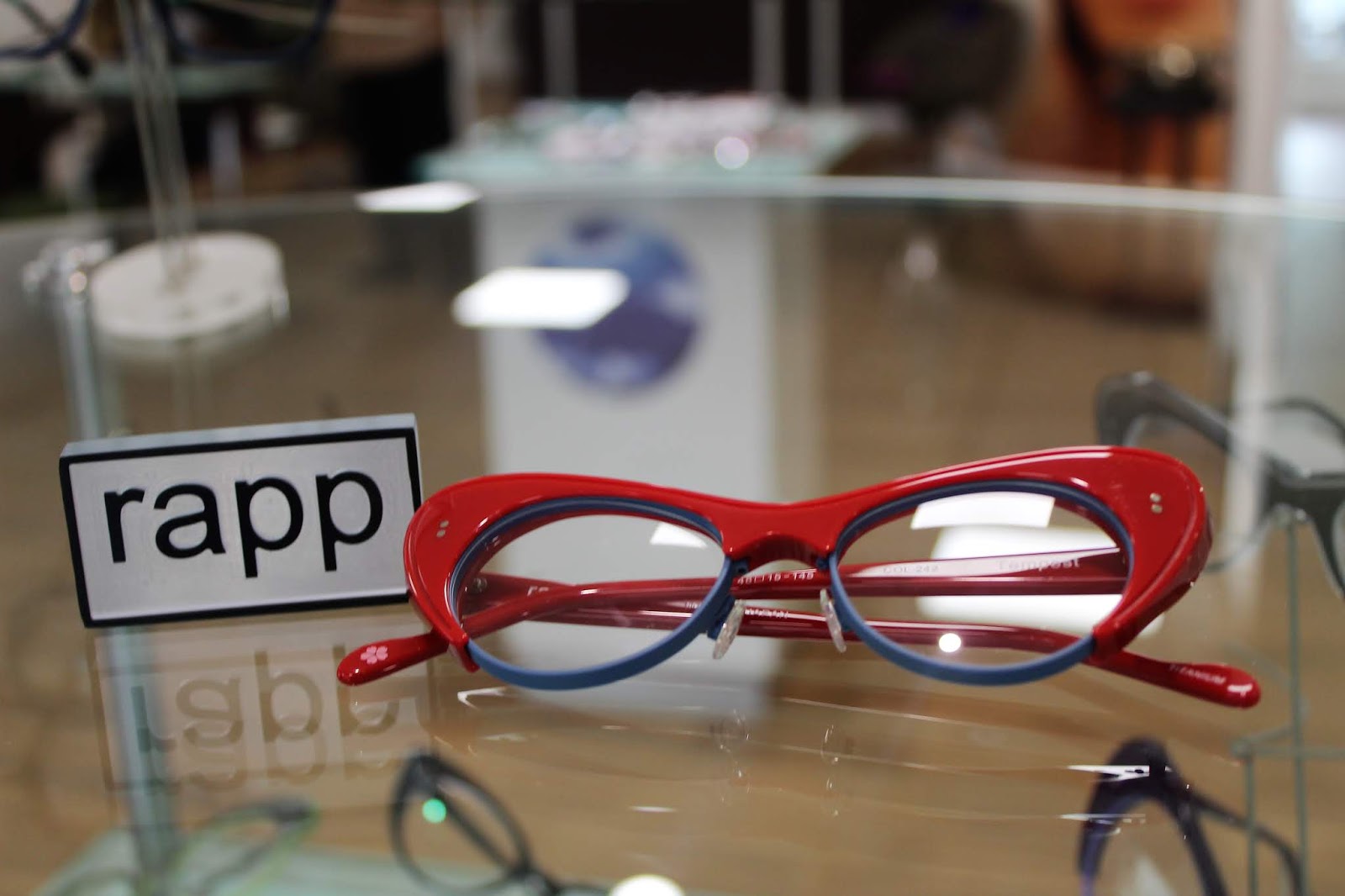 Dramatic red & blue Rapp cat-eye glasses