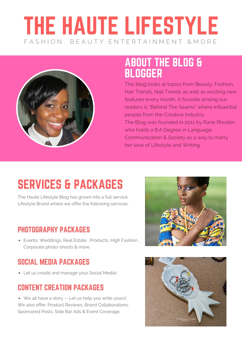 Beside that, I added a few quality photos, based on the design of your Media Kit, I would say a good number of images is 2-4 as you don’t want to make that the focal point of the Media Kit. I added an Image I did from an Editorial Shoot I did for my magazine (because it was cool) and another from a local Artisan Event we did in Jamaica.