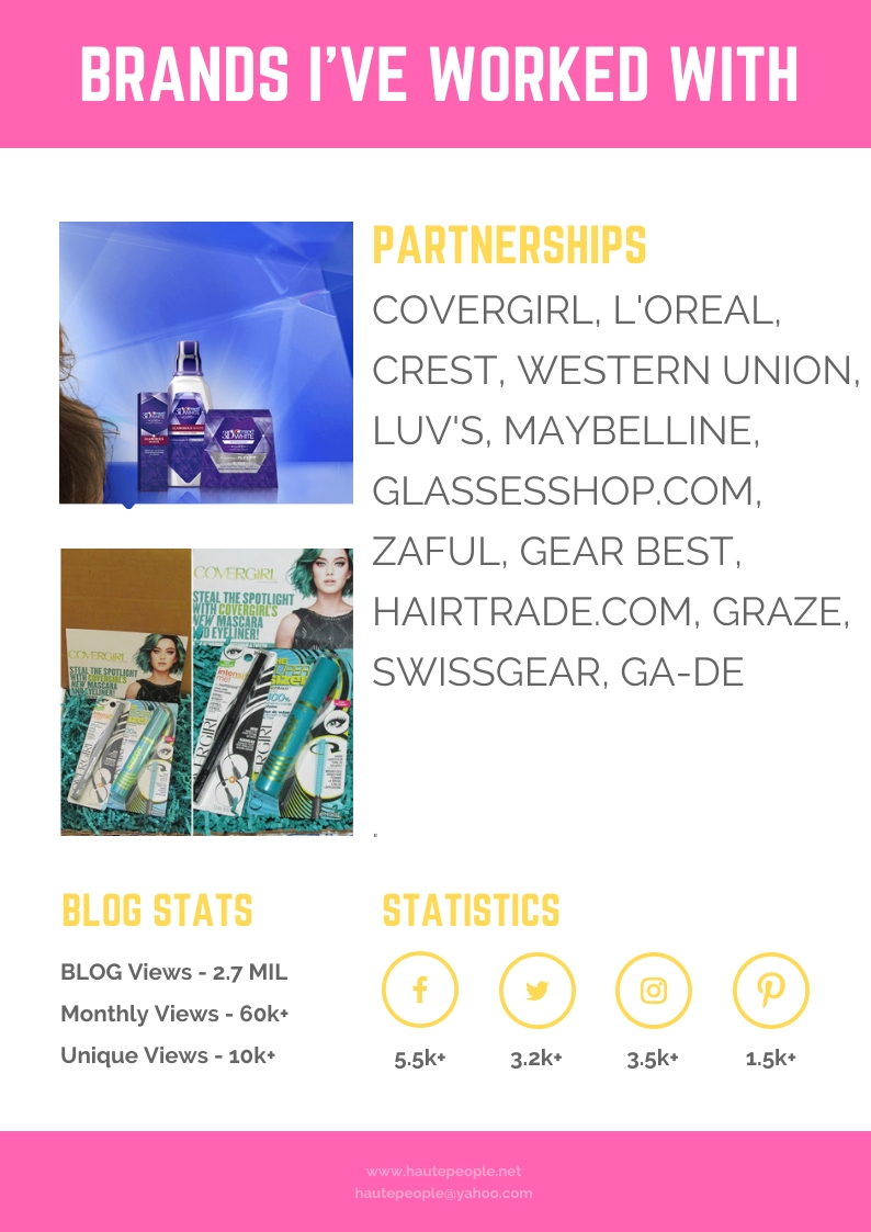 Sometimes brands that fall into the same category might not want to work with the same Blogger as they feel you might not be perceived as loyal which could raise eyebrows at their decisions. If you have not worked with any brands, you could put “Brands I would like to work with” in this section and include the brand you are pitching to so they feel you are an advocate of their brand.