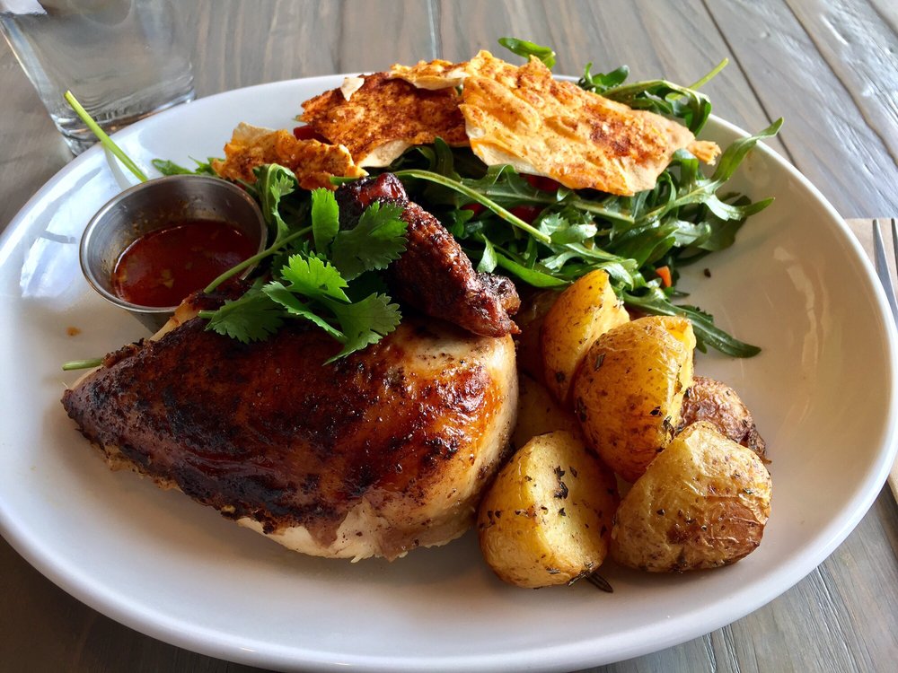 Grilled Chicken Breast with Baked Potatoes + Veggies on the side ( a combination of all the leftover Vegetables)
