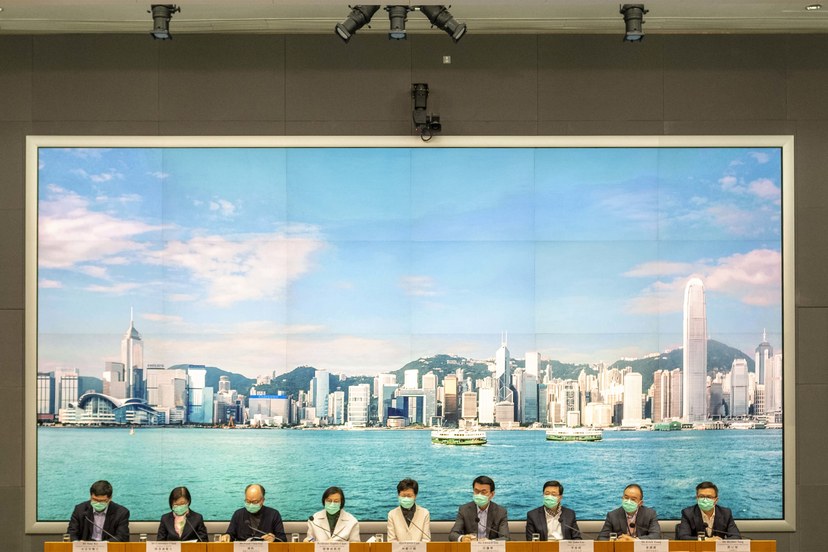 Hong Kong Chief Executive Carrie Lam holds a press conference as travel from Mainland China to the financial hub is restricted.